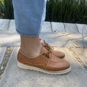Mocasín con agujeta textura cocodrilo en color maquillaje