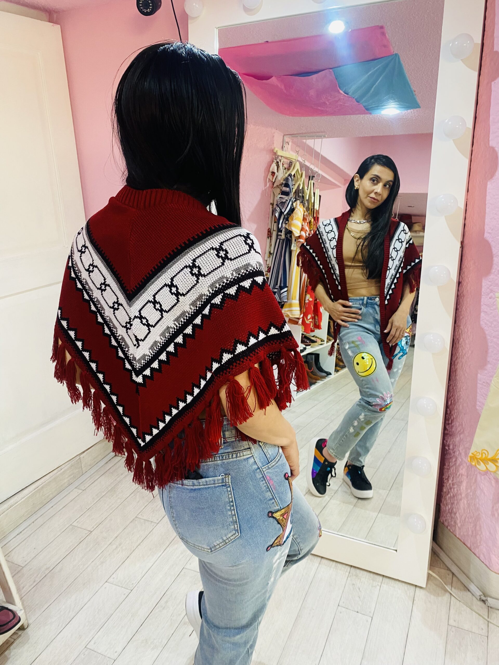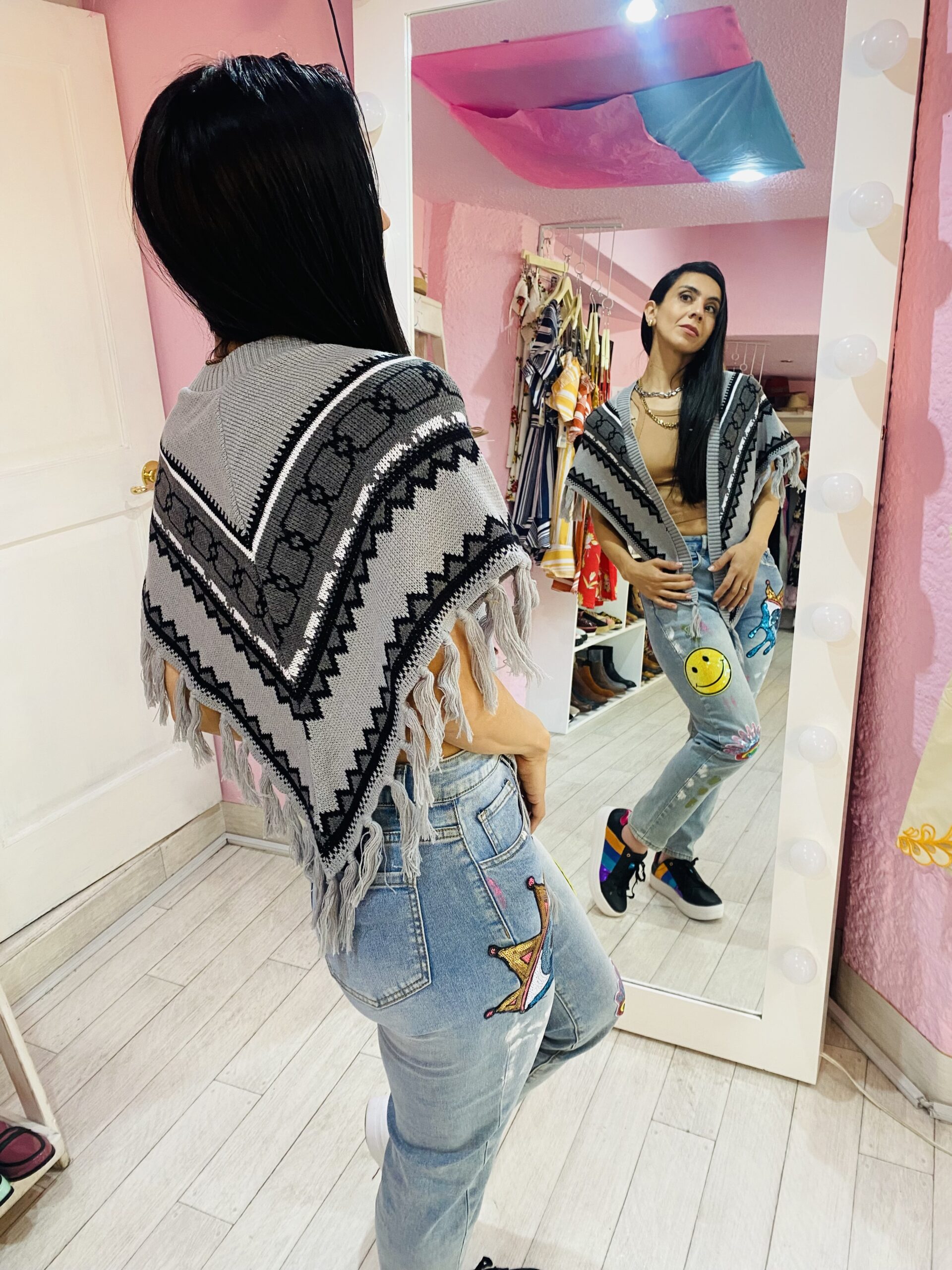• Capa con cuello con diseño de grecas