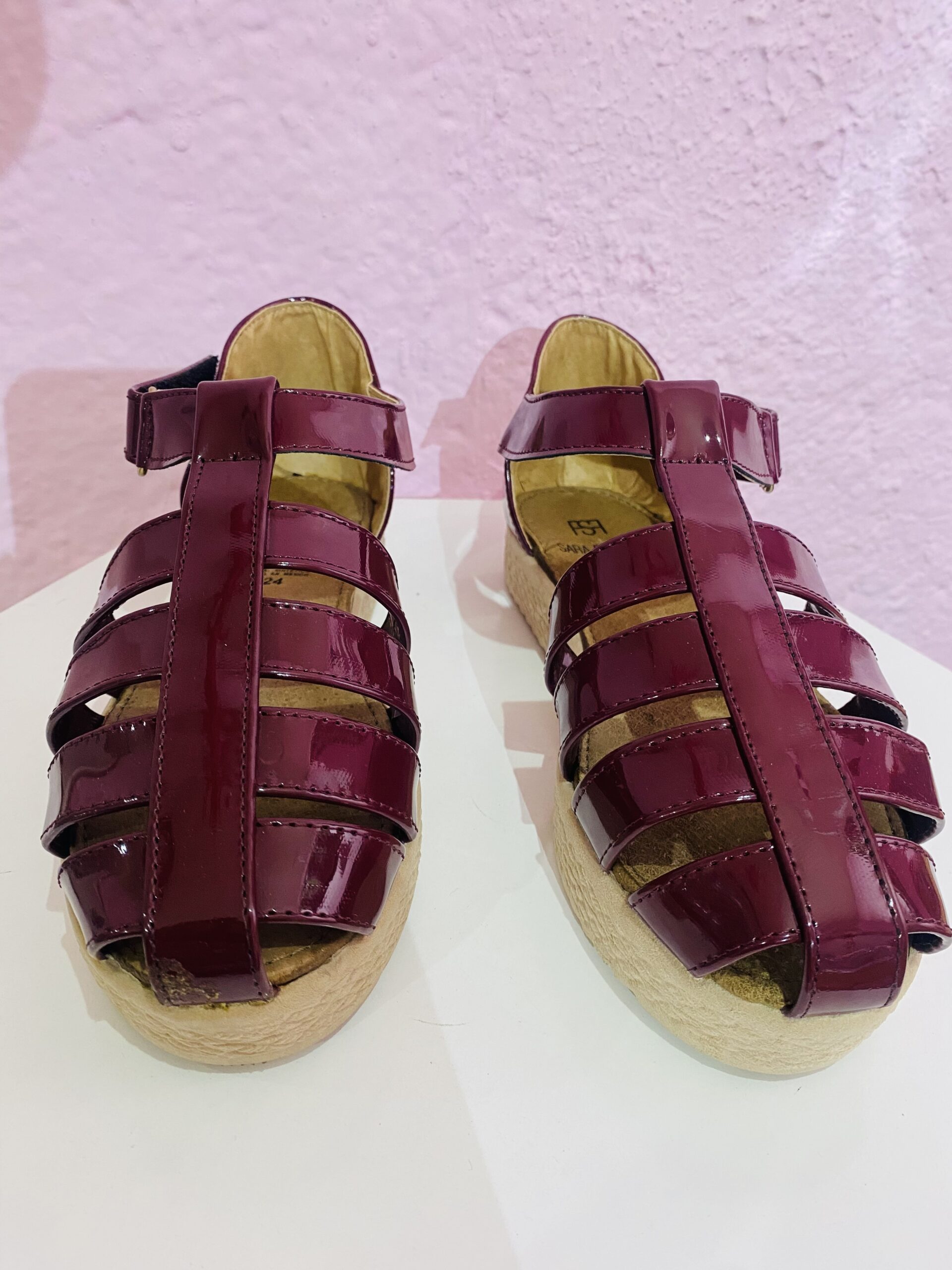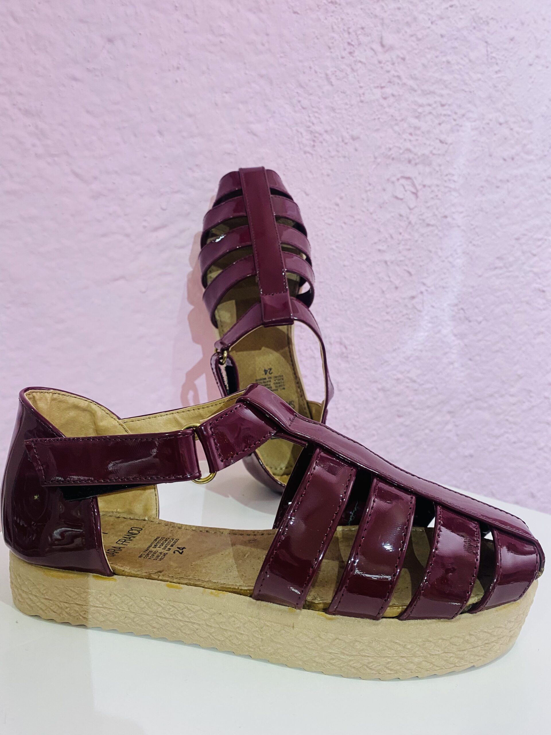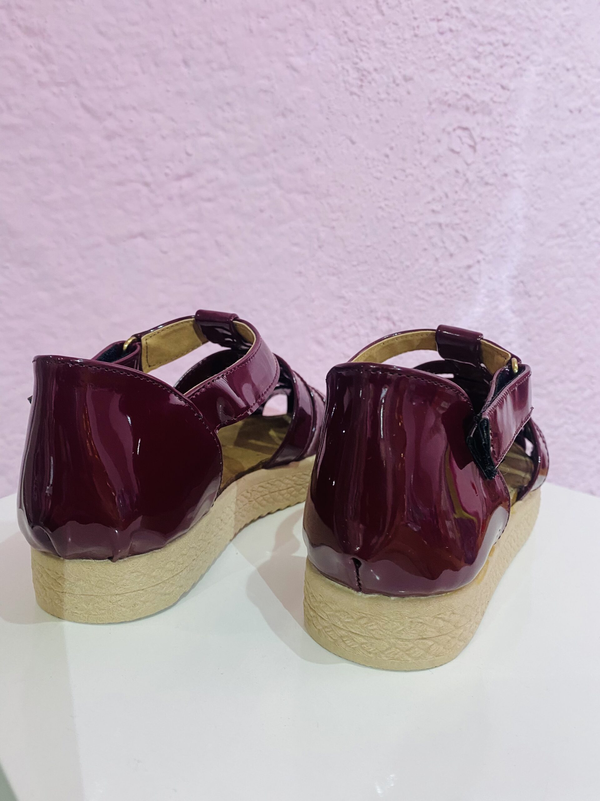 Huarache alpargata de charol en color vino