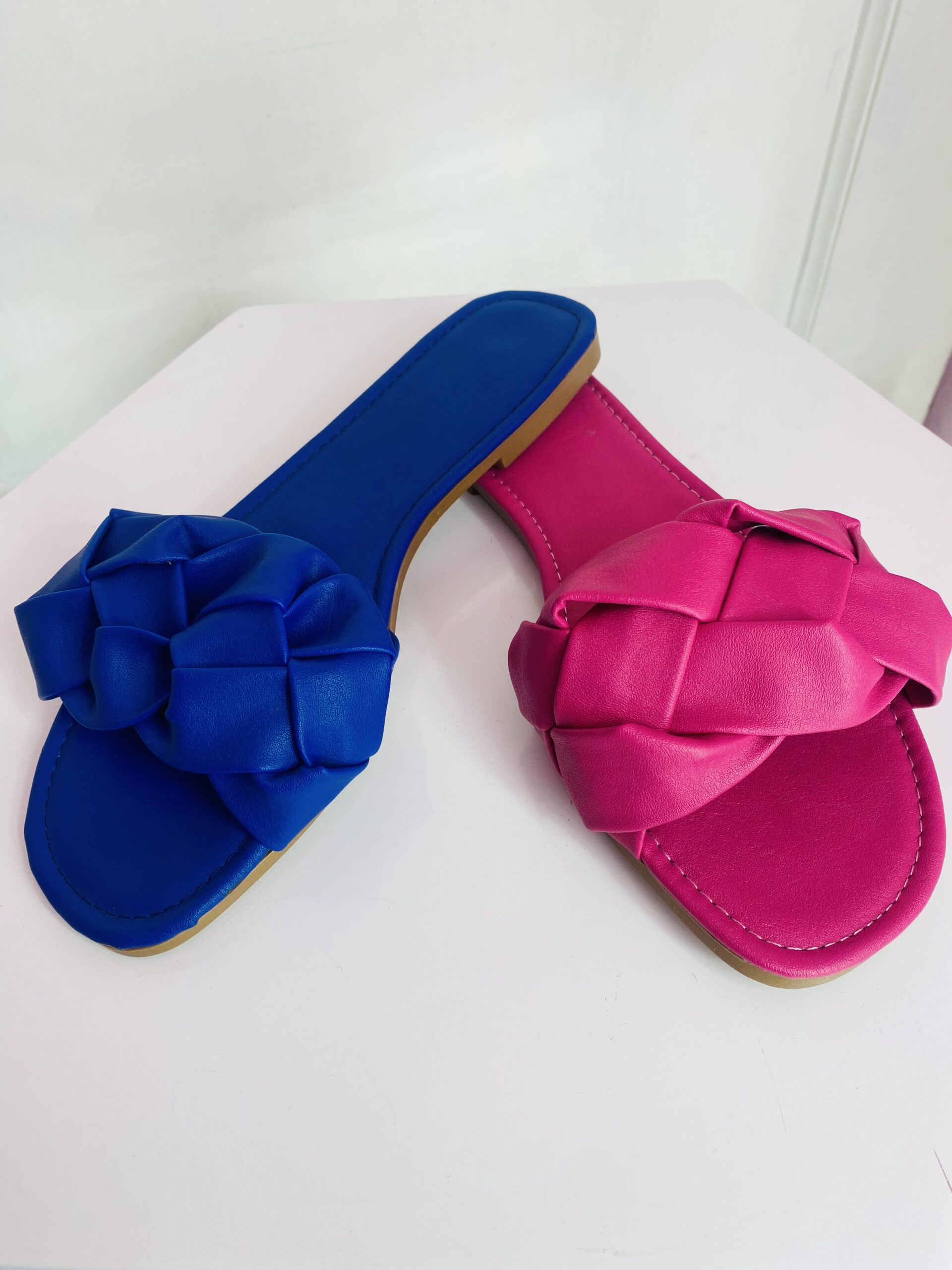 Sandalia con diseño de trenza en azul y fiusha