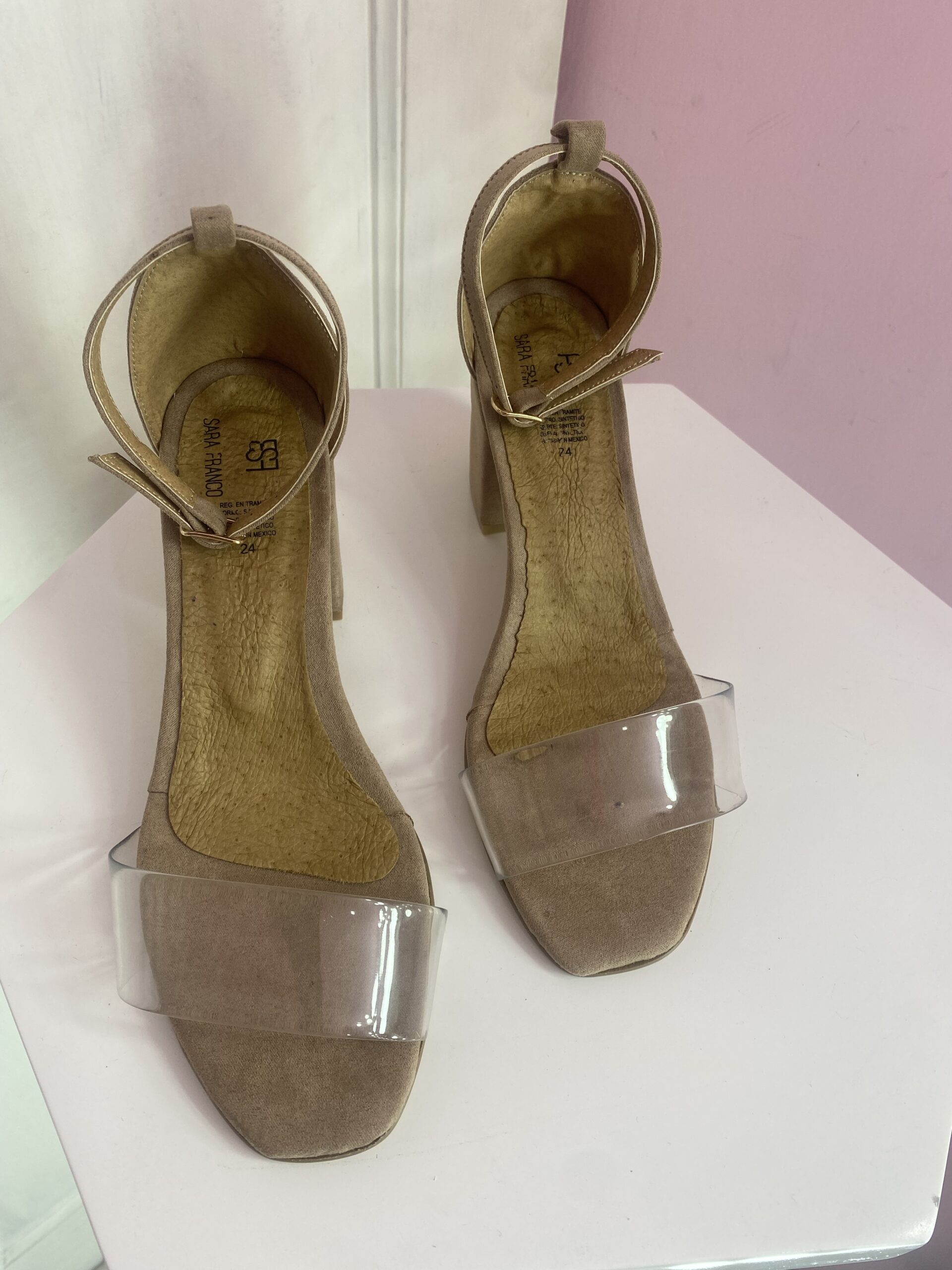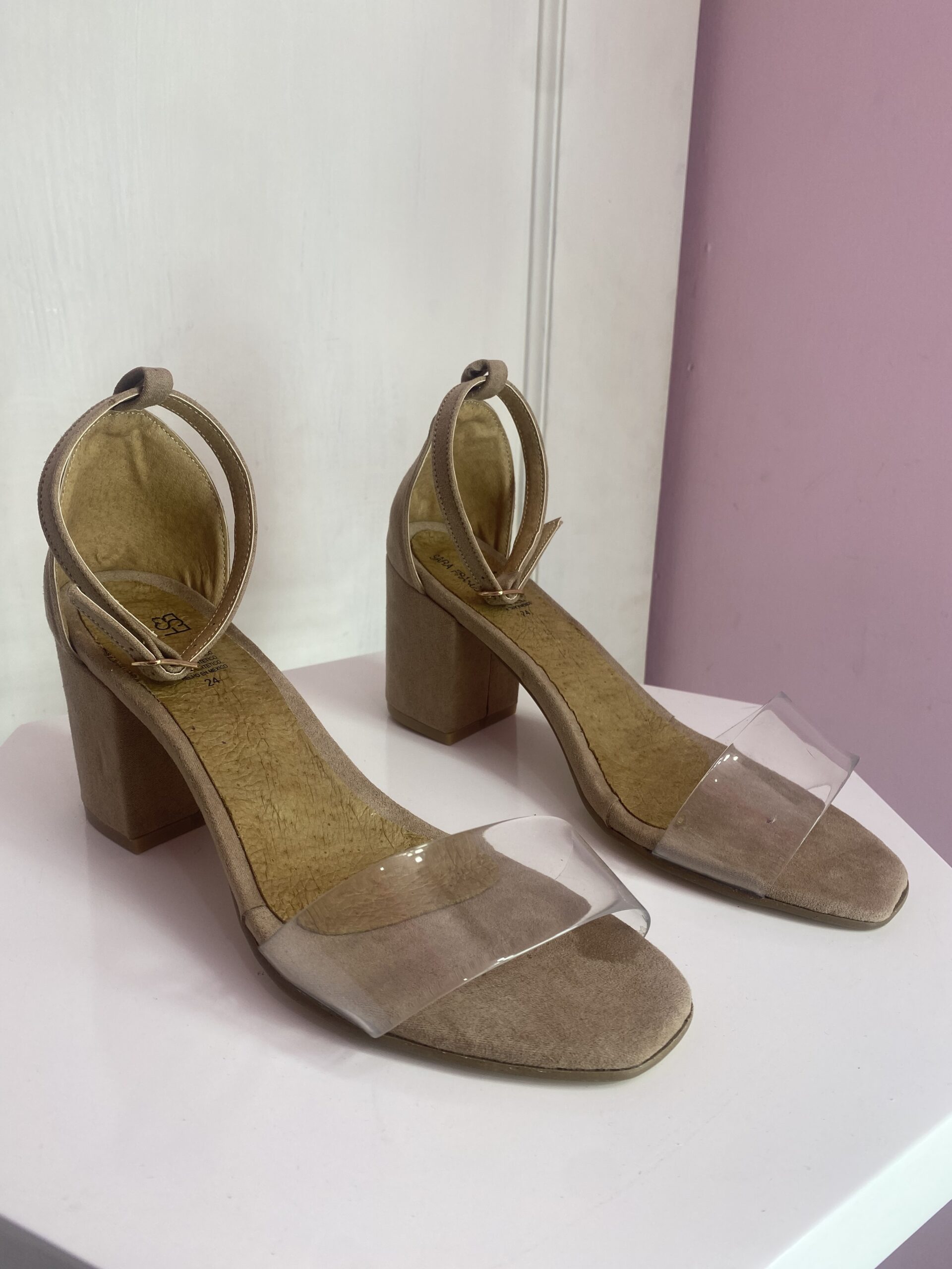 Zapatilla con tira transparente, piel de durazno